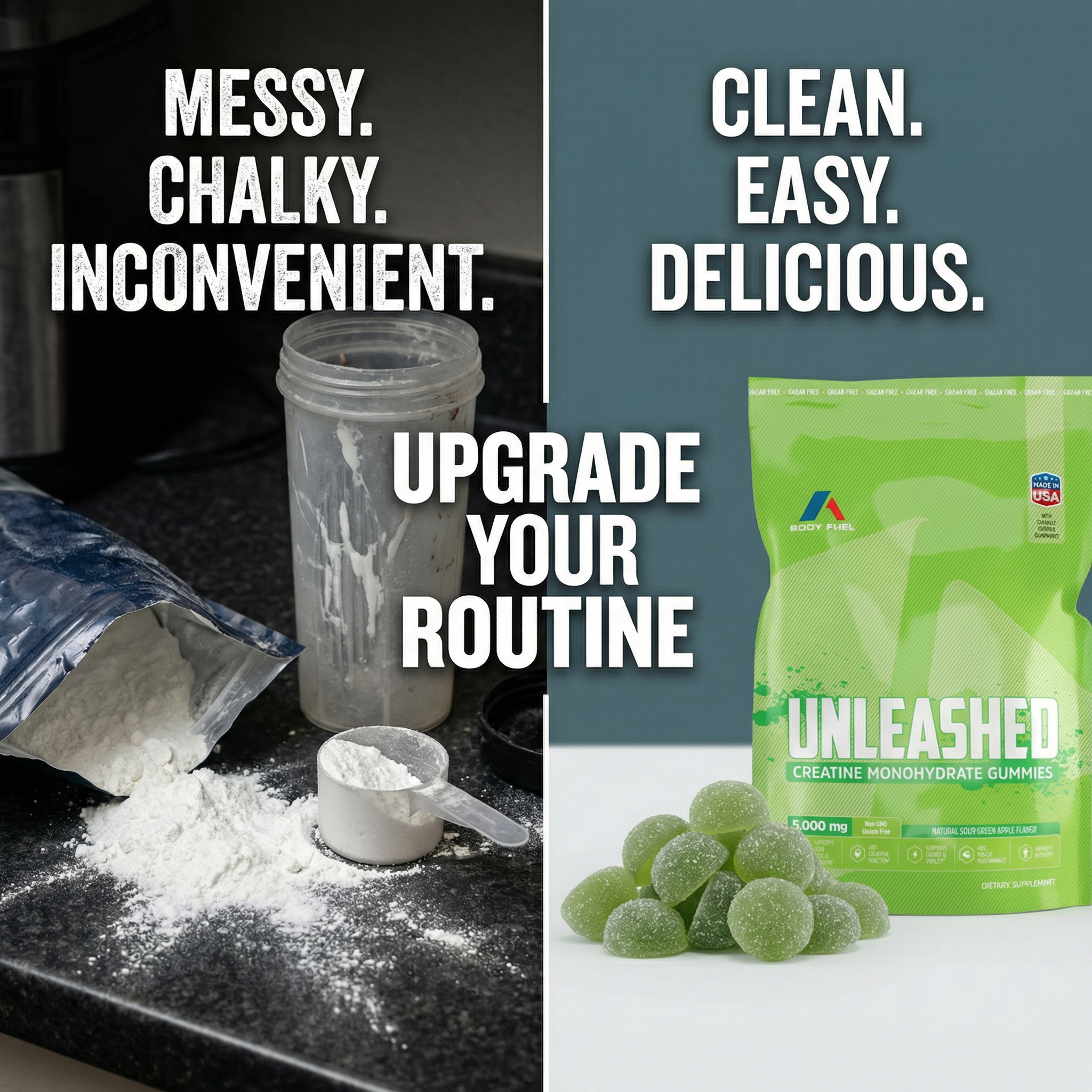 If you want to build strength, power, and performance without powders, pills, or bloating, Unleashed Creatine Gummies are made for you.